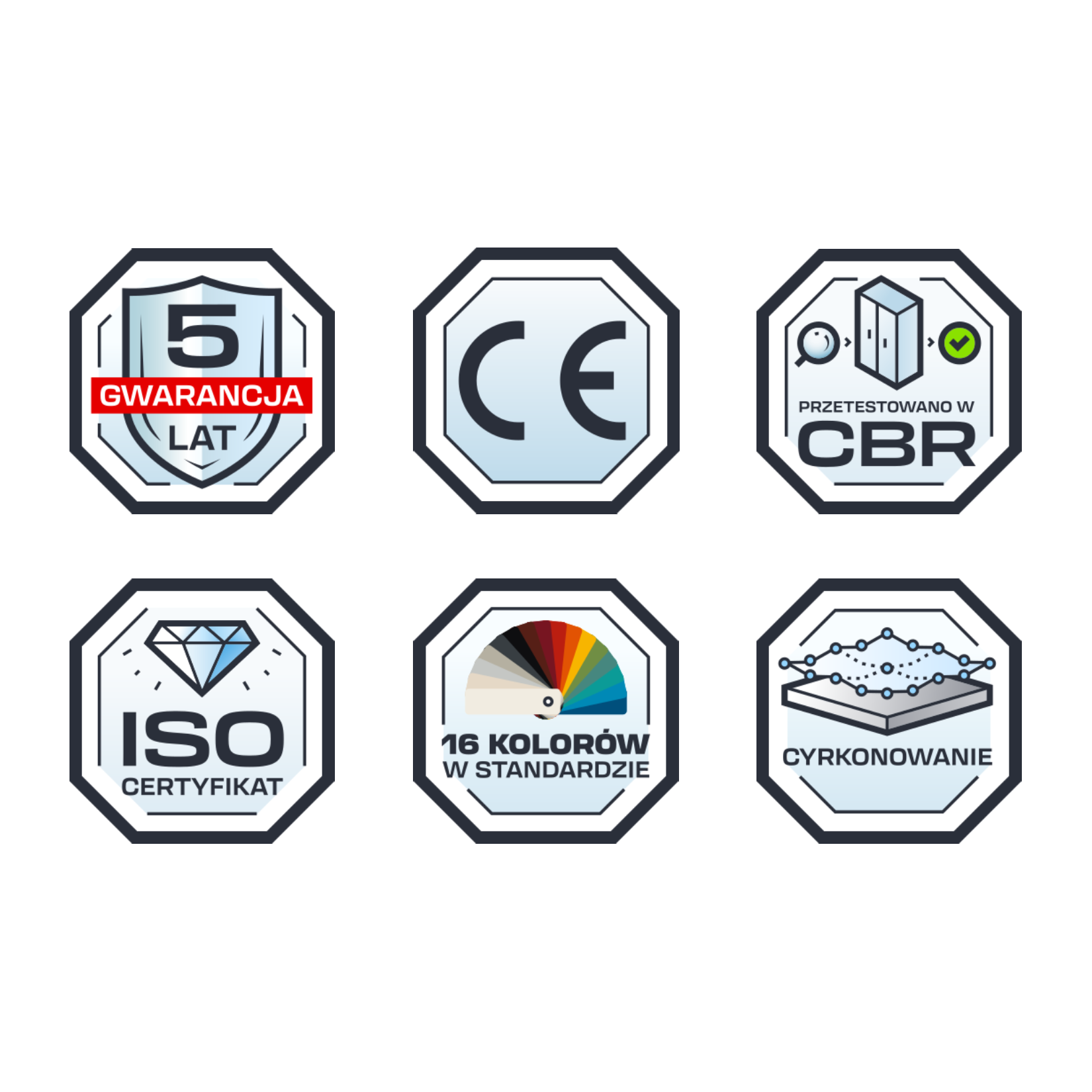 Jeśli potrzebujesz rozwiązania dedykowanego do swojego wnętrza, możesz wybrać jeden z szesnastu kolorów na zamówienie. W ten sposób dopasujesz produkt zarówno pod względem funkcjonalnym, jak i estetycznym. Pamiętaj, że niniejsza tabela ma jedynie na celu przybliżone przedstawienie kolorów.